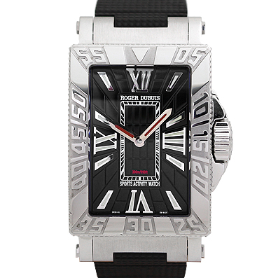 レクタンギュラー(長方形)ケースのクラシカルテイストが魅力のシーモア。四隅にコーナーを持つレクタンギュラーケースは、気密性の面で圧倒的に不利と言われながらも、驚異的な300m防水を実現。さらに驚くことに、バックスケルトンを採用しての数値という、ロジェ・デュブイの技術力を感じずにはいられないモデルです。